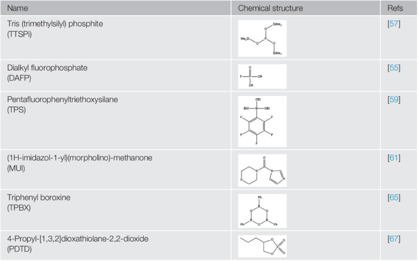 表1 种有机分子基CEI形成添加剂的化学结构