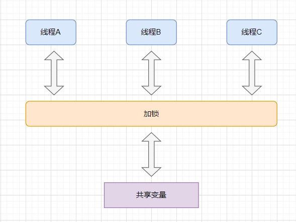 为了解决线性安全问题,可以用加锁的方式,比如使用synchronized 或者Lock。但是加锁的方式,可能会导致系统变慢。加锁示意图如下: