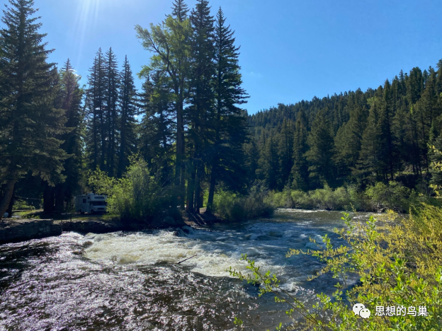 我们在科罗拉多的栖息地,是一个山谷里的房车营地。营地位于格兰德河国家森林公园内,清澈湍急的河流,每天都为安宁静谧的营地伴奏着高亢的奏鸣曲。