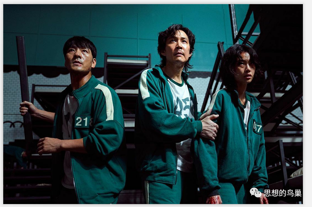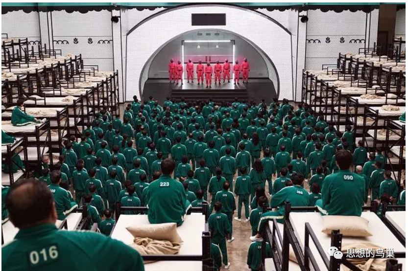 在第一个游戏之后,选手们惊慌害怕,用投票的方式选择结束游戏回到现实生活。可是却有90%的参与者又自愿回到游戏中去。为什么?这里才是让人最难以释怀的地方。也就是说,现实生活比游戏更让他们绝望,游戏对他们来说反而是存在希望的,就算这些游戏危险、残忍、无人性。可他们所遭受的现实比这些还要残忍、绝望。所以参与者们才会纷纷回到游戏中去。