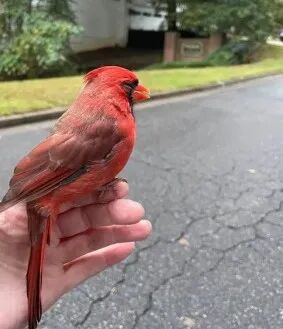 仔细地看了看它全身,没发现伤口,但一定有什么地方不对。带着它去了野生动物中心,可是他们只收治大型捕食鸟类,不收小型鸣禽。不过,工作人员非常友善,仔细检查了红雀,告诉我,它锁骨断了,还说,动物和人类一样,骨折后会非常痛苦。