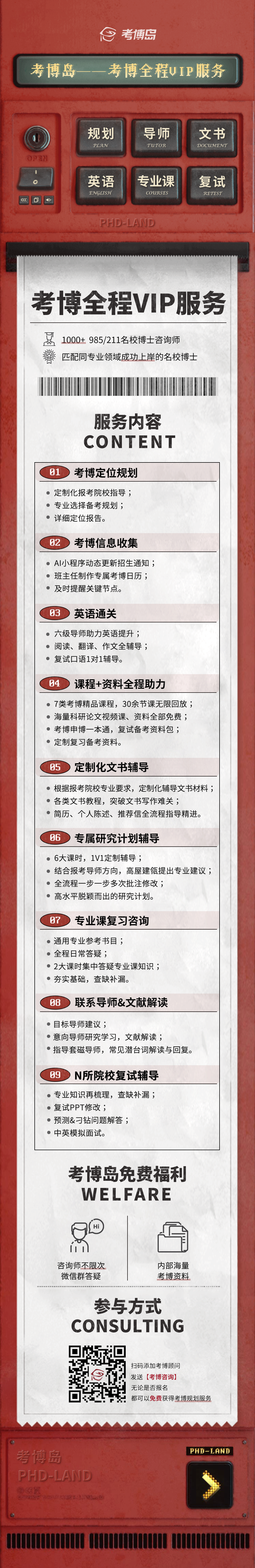 无论是时间还是精力多少显得捉襟见肘?只要你决定考博,那么考博岛全流程VIP服务值得你的选择!