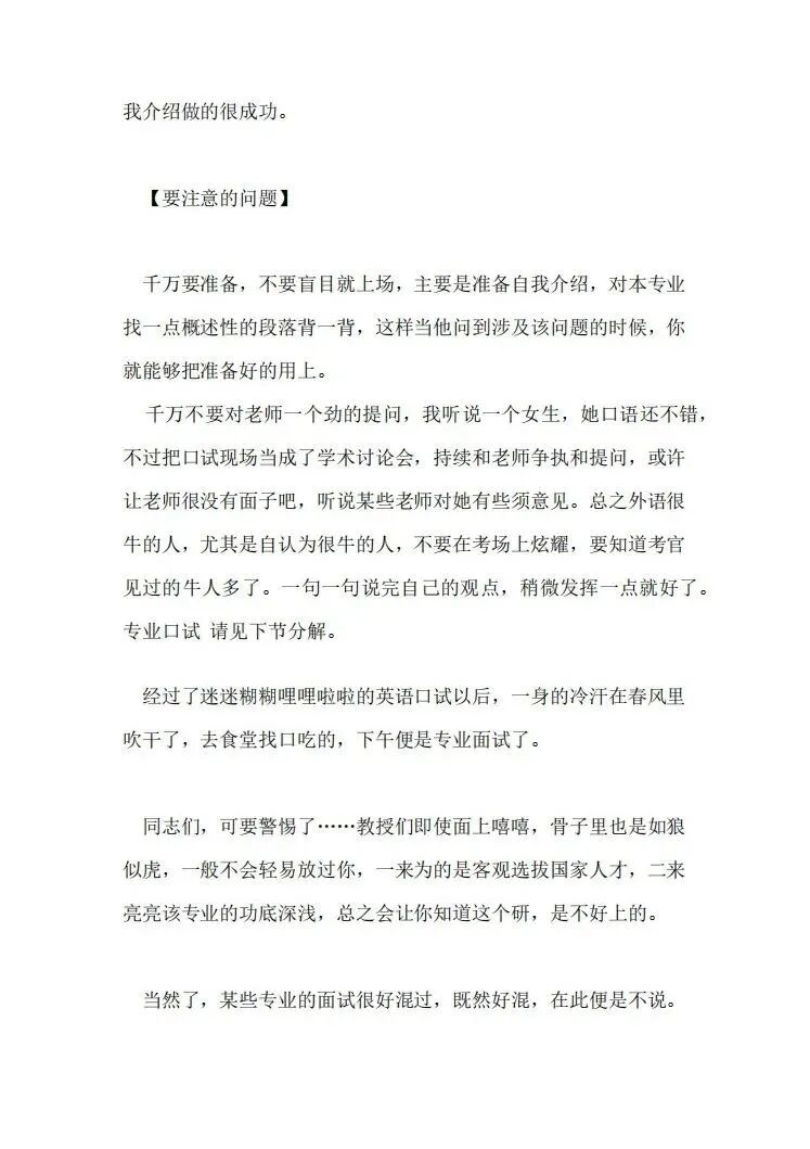 专业面试,核心问题是“个人前期研究经历、博士期间拟开展的研究”两部分。