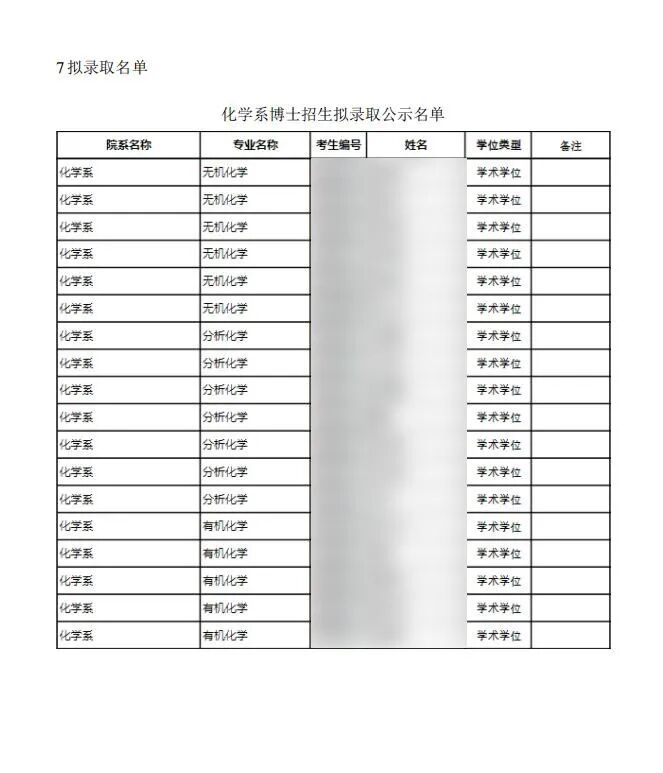 拟录取名单