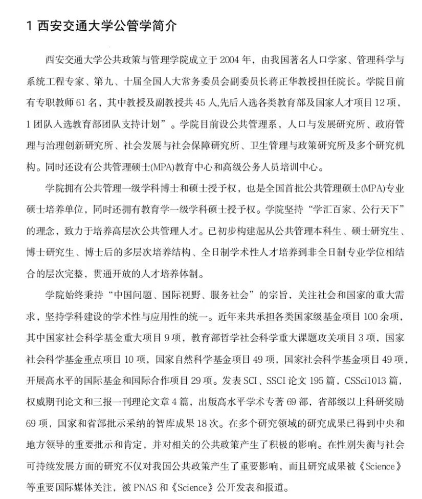 西安交通大学公共政策与管理学拥有公共管理一级学科博士和硕士授予权,也是全国首批公共管理硕士(MPA)专业硕士培养单位,在全国第四轮学科评估中继续保持优势地位,位列全国A-类人文社会学学科之一。