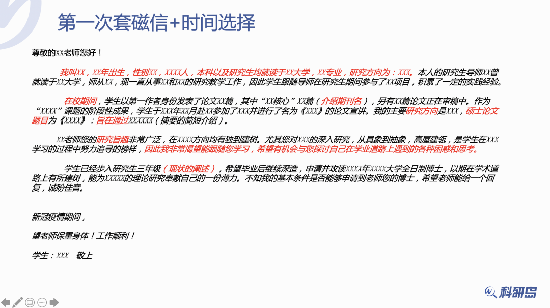 本次讲座主要分为四个部分:第一封套磁信、看懂导师回信妥善回复、套磁后约导师见面和套磁后与导师培养感情。