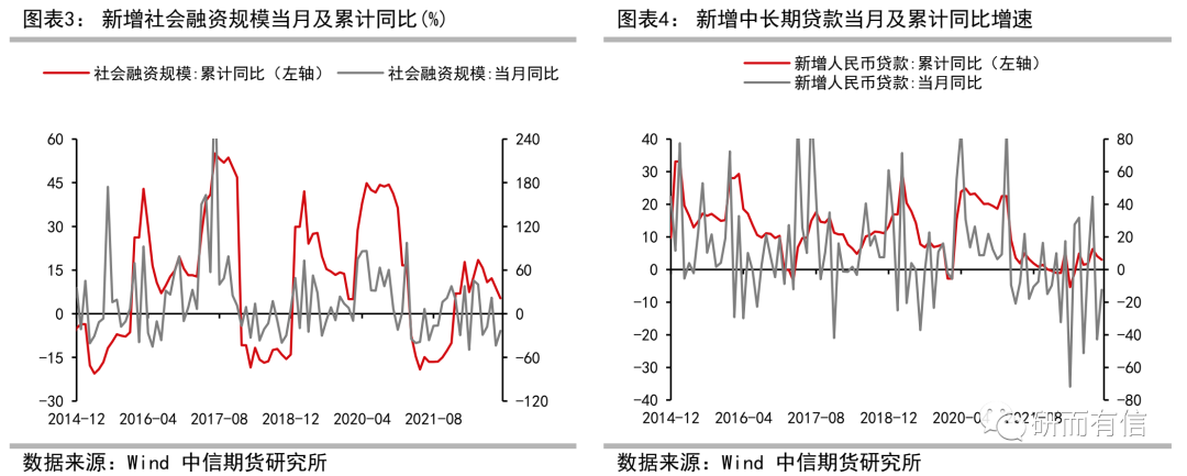 本公众号所推送的内容经由中信期货授权后发布,均为中信期货已公开的信息,不保证文中观点或陈述的完整性、准确性和更新及时性,且不作任何担保。本公众号所推送文章不构成任何形式的投资建议或销售要约,期货有风险,投资需谨慎。由于去年同期基数偏高以及实体经济融资需求偏弱,11月新增社融同比少增6083亿元。不过,企事业单位中长期贷款同比多增3950亿元,反映政策鼓励实体企业融资。考虑到房企融资支持力度显著加大以及防疫优化提振经济信心,预计未来几个月新增社融边际改善。