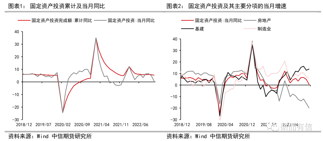 本公众号所推送的内容经由中信期货授权后发布,均为中信期货已公开的信息,不保证文中观点或陈述的完整性、准确性和更新及时性,且不作任何担保。本公众号所推送文章不构成任何形式的投资建议或销售要约,期货有风险,投资需谨慎。由于疫情扩散影响,11月份我国投资、消费当月同比增速分别回落4.3、5.4个百分点至0.7%、-5.9%。需求的显著下滑导致工业增加值与服务业生产指数当月同比增速分别回落2.8、2.0个百分点至2.2%、-1.9%。虽然防疫政策已经优化,但未来1-2个月国内疫情处于扩散期,预计经济仍受疫情抑制;随后随着疫情的消退与平稳,预计国内投资、消费、工业生产与服务业生产均将趋于修复。