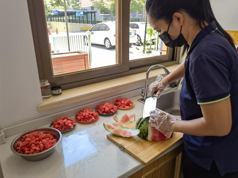 为了让户外工作者能够感受到尊重和关怀。社区妇联成员分外用心,大家一大早就开始忙碌,采购新鲜西瓜、牛奶,西米露等食材并且精心熬制、冷藏。等到下午,一碗碗清凉营养又美味的饮品送到了老人、快递小哥、环卫工人和社区工作者手中。