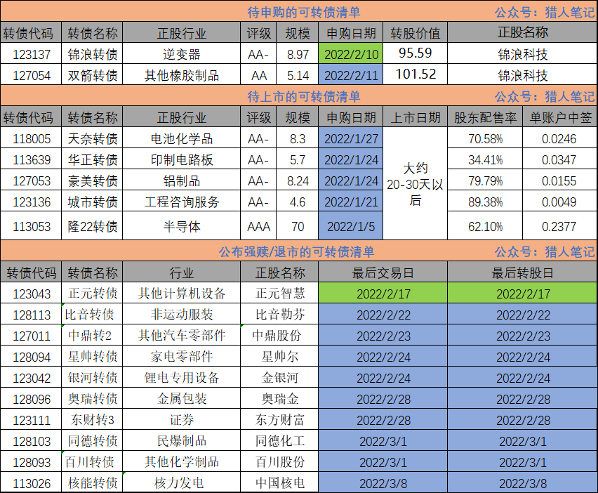 成交量第一名正元转债已经公布强赎,最后交易日是2.17日,不过因为规模比较小,炒作非常活跃。同时正股正元智慧是少数与中国人民银行数字货币研究所签订合作协议的上市公司之一,算是根正苗红的数字货币概念,非常活跃。