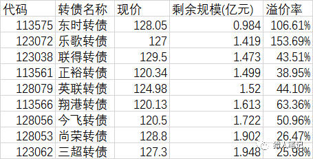 除了次新债以外,还有一些小规模的老债也值得关注,我把价格低于130元、同时规模低于2亿的转债列在下面了。