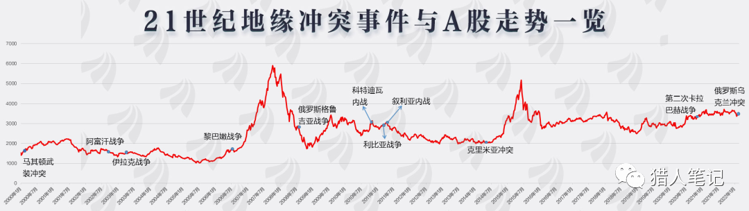 不过看一下东财整理的地缘冲突和A股走势图,长期来看这些局部冲突对股市的走势影响很小。
