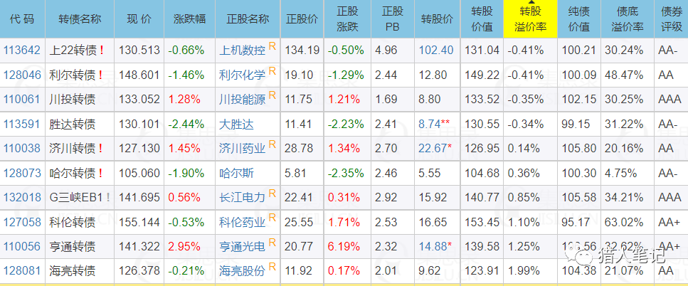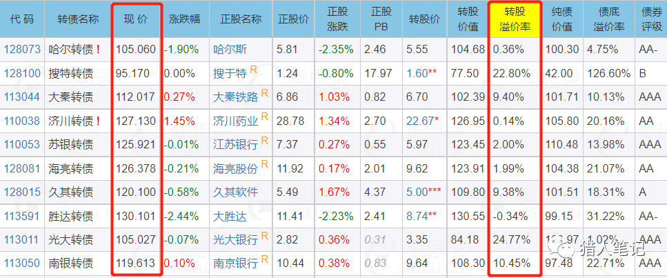 哈尔转债:最后交易日10.27日,当前溢价率0.36%;