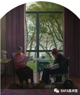 修改建议:画面里添加儿子儿媳和一个孙子,儿媳的肚子要有明显隆起,响应二胎生育政策,画面氛围可参考第12届全国美展中国画金奖作品《儿女情长》。