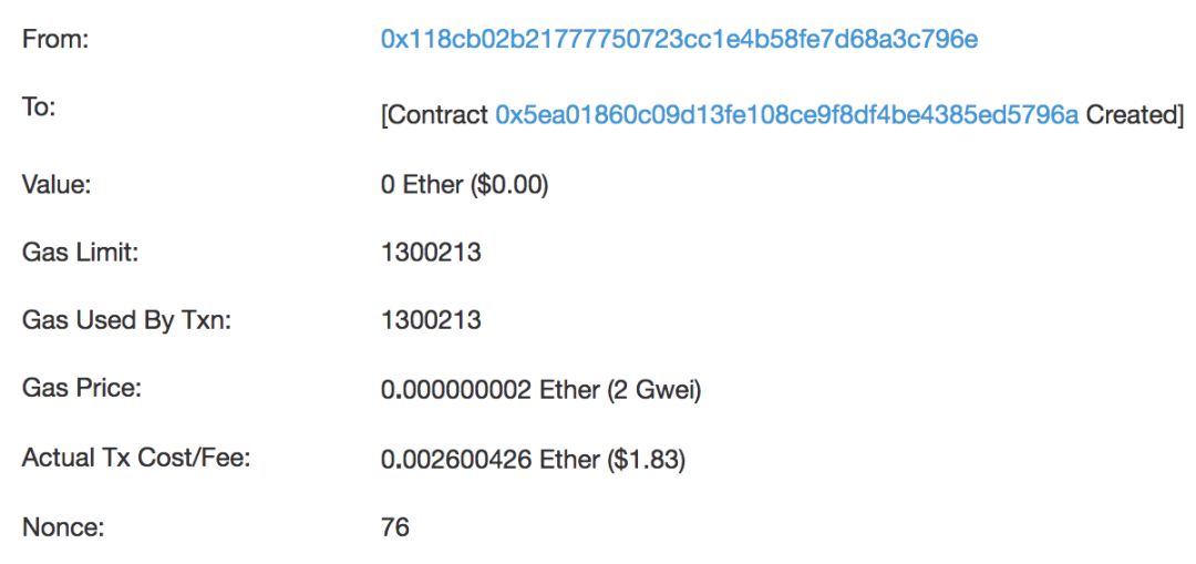 除了价格以外,还需要指定一个gas limit,就是你为了这段代码最多愿意付多少单位的gas。这就是为了预防代码出现问题,无限循环下去,直到把你的账户里的钱耗尽为止。如上图,gas limit设为1,300,213个,这段代码实际上也只用了1,300,213个单位的gas,还好,正好没有超过限制。否则超过了程序执行会嘎然而止,已经花的gas不退。