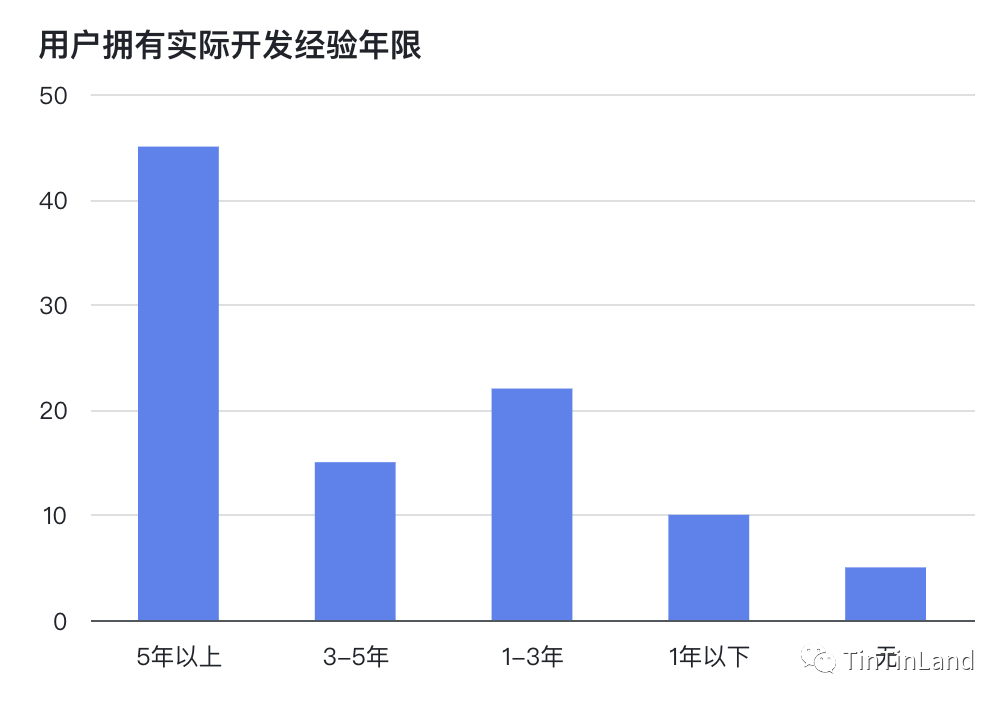 课程学员中,大约 95% 左右的学员拥有实际开发经验,拥有 5 年以上开发经验的开发者占比约为 46%。