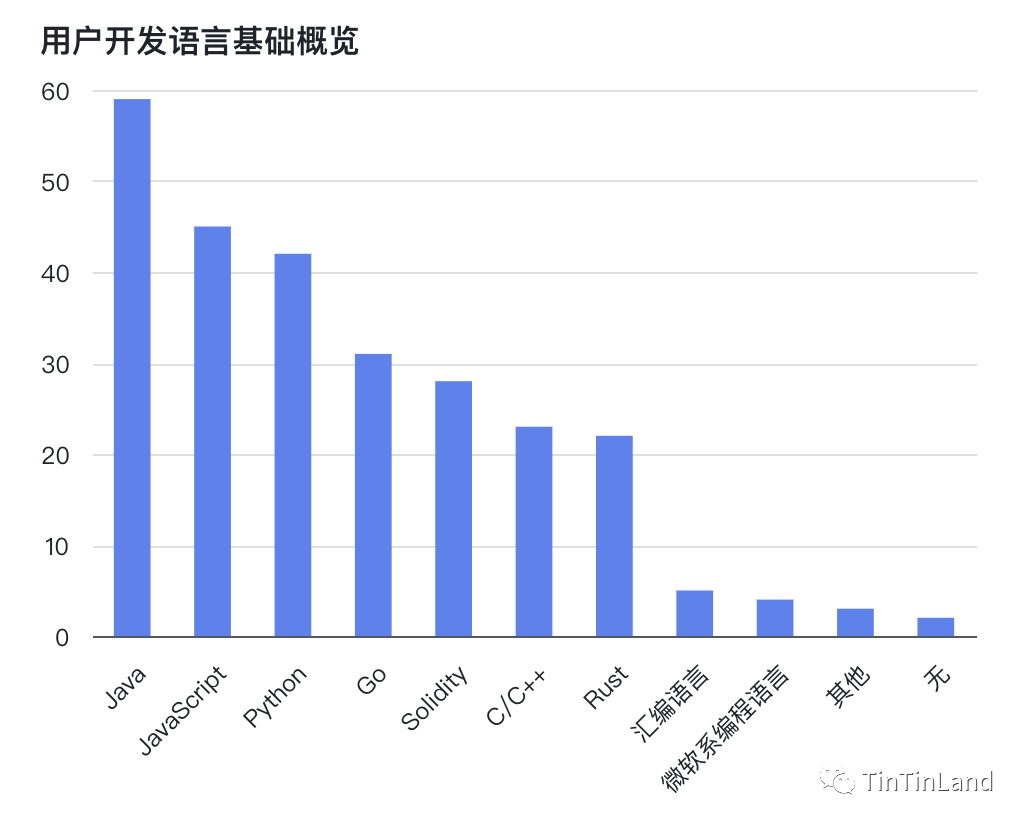 在本期课程的学员中,大部分都拥有或多或少的开发经验,主要为 Java、Javascript、Python、Go、Solidity、C/C++、Rust 等,另外有 5.1% 学员为 0 基础学员。