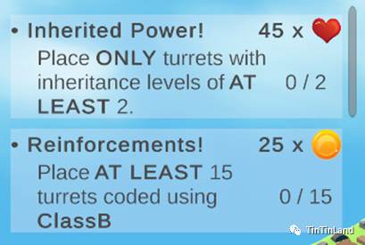点数:点数表示游戏中存在的生命值和货币资源。它们起到反馈循环的作用,并通过激励学生获得更多此类资源来进步来鼓励他们参与游戏。平衡和管理这些资源背后的策略在于积极利用面向对象的编程来编码他们的炮塔。