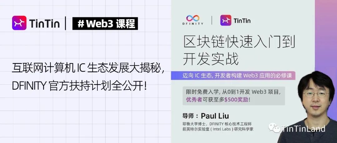 了解了 IC 生态的领先性和开发者友好的环境,你是否也对迈向 IC 生态、构建属于你的 Web3 应用产生了浓厚的兴趣?TinTinLand 已经为你准备好了开发入门课程!