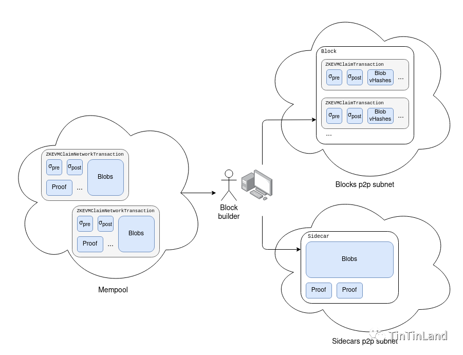 请注意,在实际操作中,我们很可能希望将 sidecar 分为两个独立的 sidecars,一个用于 blob,另一个用于证明,并为每种类型的证明设立一个独立的子网(另外还有一个子网用于 blobs)。