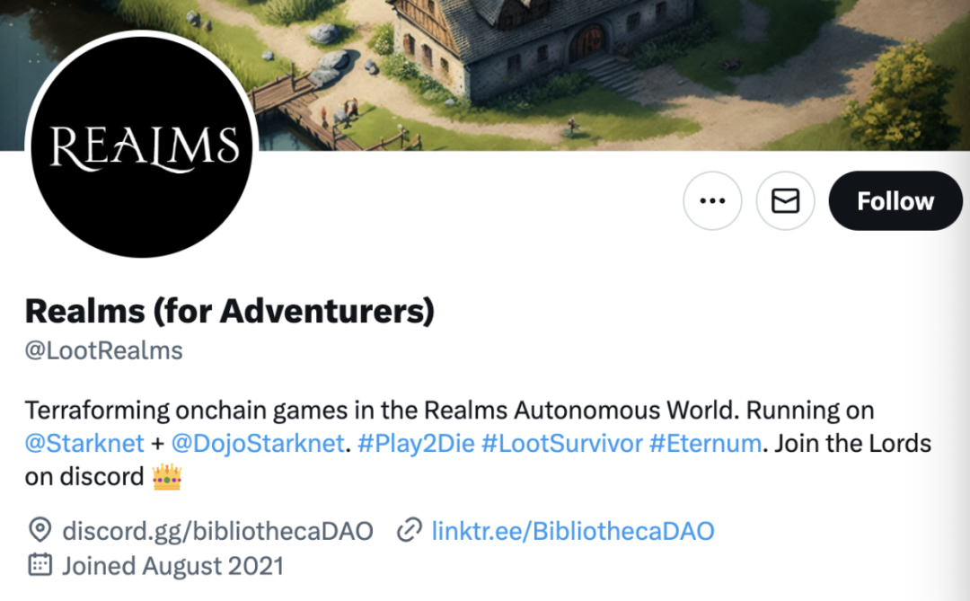Realms.World 是一个充满完全在链上游戏的奇幻多元宇宙。Realms.World 是 Bibliotheca DAO 的项目,一个由开发者和玩家组成的集体,正在将 Realms 变成自治世界。由 DOJO 提供支持,并在 Starknet 上运行。