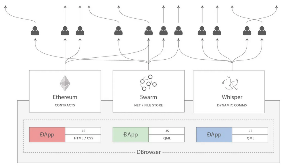 2014 年,Gavin Wood 将以太坊作为可以构建的一套工具之一进行介绍,另外两个工具是 Whisper(去中心化消息传递)和 Swarm(去中心化存储)。前者受到了极大的强调,但随着 2017 年左右金融化的转变,对后者的关注和爱护远不如前者多。尽管如此,Whisper 仍然以 Waku 的形式存在,并且被像去中心化通讯 Status 这样的项目积极使用。Swarm 仍在不断发展,现在我们还有了 IPFS,用于托管和提供这个博客。