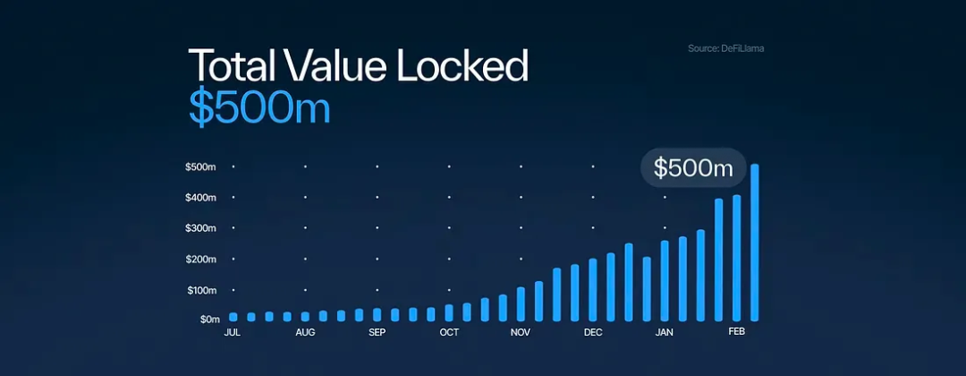 有了强大的融资支撑,Sui Network 加快了技术迭代步伐。2022 年 5 月,Sui Network 公开发布 DevNet 并于当年 8 月启动测试网,一年过后的 2023 年 5 月,Sui Network 主网正式上线。今年 2 月初,Sui Network 主网又经历了两次重要更新,TVL 突破 5 亿美元并在 10 天后再次突破 6 亿美元,值得一提的是这一里程碑成就是 Sui Network 在不到 9 个月的周期中达成的。
