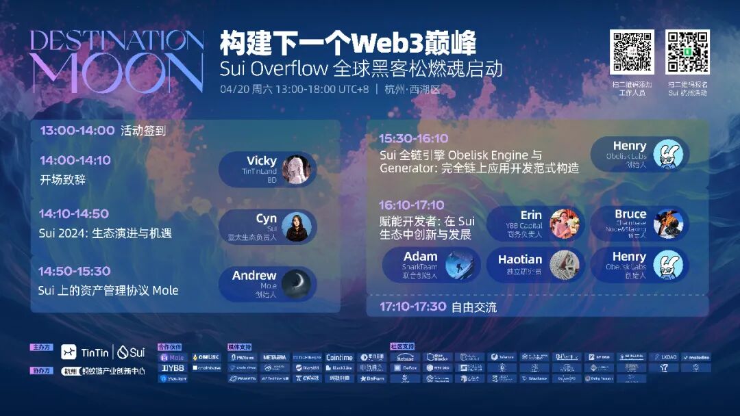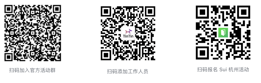 近年来,Sui Network 逐渐建立了以对象为中心的数据模型、在交易签名和 PTB 中实现精细化权限、优化用户友好功能,为开发者和用户提供了一个更为灵活、安全的链上运行环境。如果你也想了解和洞察更多关于 Sui 生态发展的全新趋势,找寻 Web3 行业发展的深耕方向,那就不妨来「TinTin DESTINATION MOON」杭州站活动一探究竟!