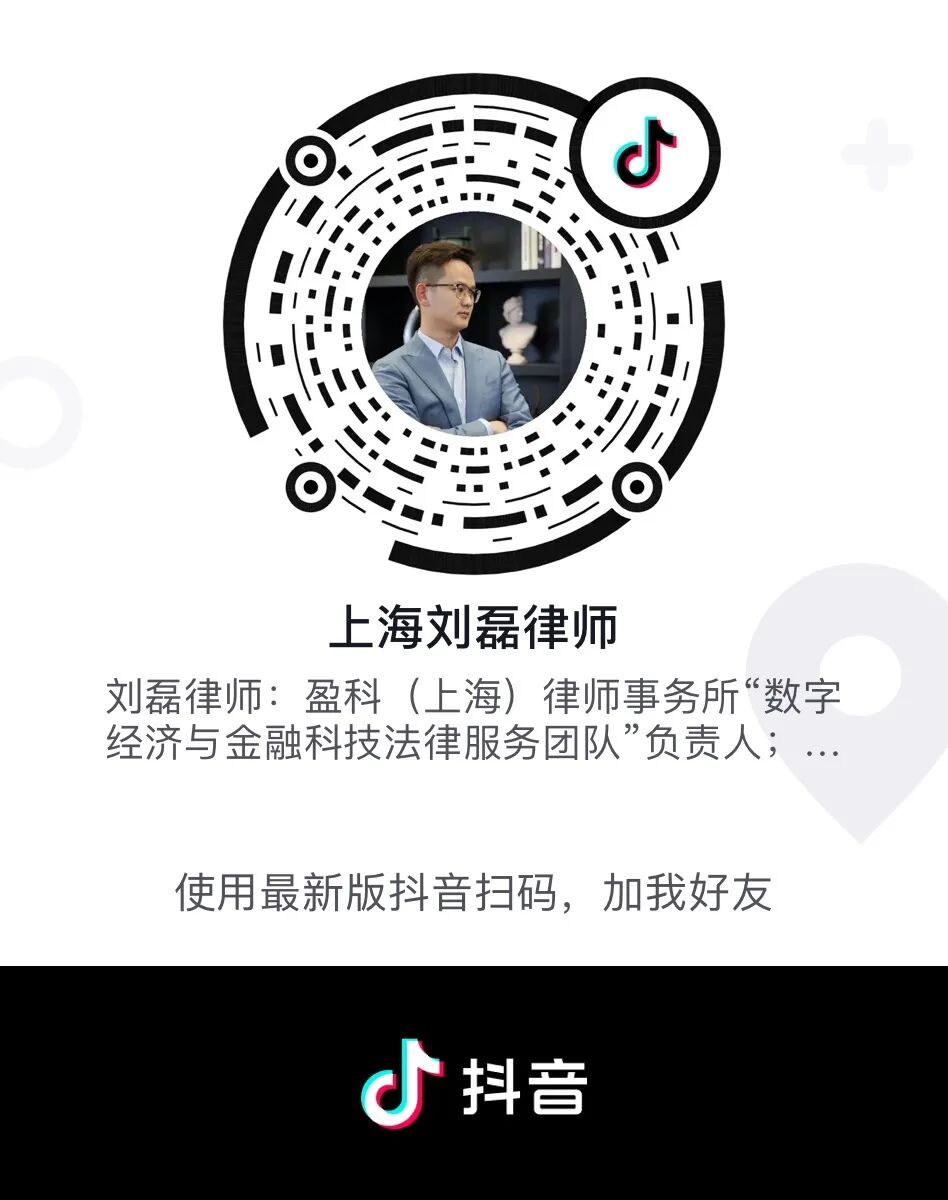 刘磊,经济法学硕士,北京盈科(上海)律师事务所执业律师,盈科上海“新十年.新青年”先进典型,甘肃政法大学人工智能法治研究院研究员。