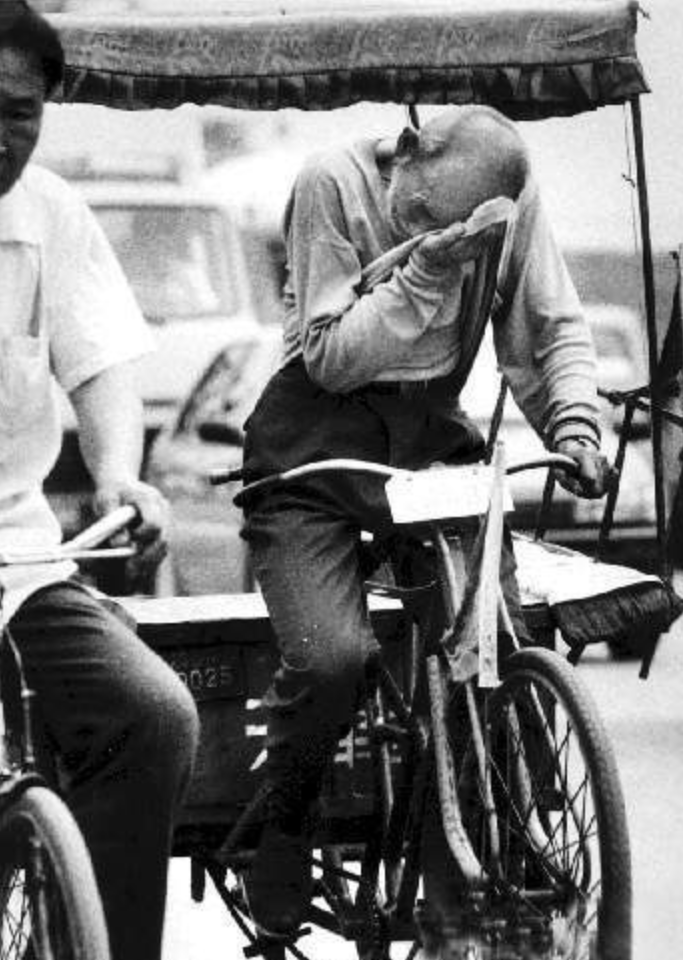 一根竹棍挑着装有塑料废瓶的袋子,压在肩头,他就是闹市里那种典型的会唤起你同情心,令你感慨“生活不易”的“拾荒者”。