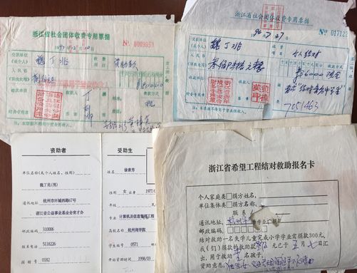 韦思浩的三个女儿都远嫁外地,平时留他一人在杭州,直到他出了事,才知晓父亲是在杭州图书馆读书的“拾荒者”之一。拿着5600多元的退休金,放着晚年清福不享,拾荒,他这是图什么呢?第四个“秘密”:他还有一个温暖过很多小孩的名字,“魏丁兆”。“我们都生活在外地,想让他和我们住他不肯,想给他装修一下房子他也不肯,说太浪费,要给他买手机他也不要……”浙江省社会团体收费专用票据、浙江省希望工程结对救助报名卡、扶贫公益助学金证书……图丨大大小小数十张捐资助学凭证 大多数用的是化名“魏丁兆”