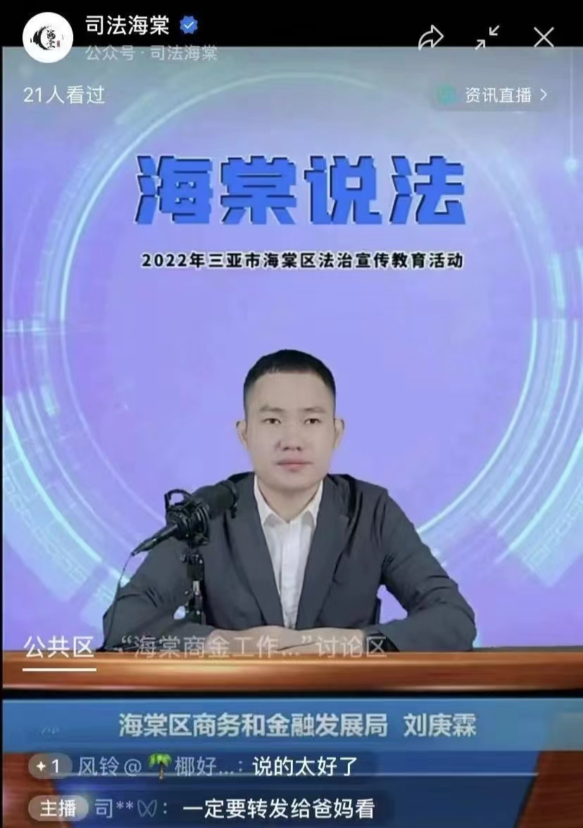 海棠区大力宣传数字人民币,数字人民币支付场景已铺设海昌梦幻海洋不夜城、三亚国际免税城及沿海一带酒店;区商务和金融发展局联合区司法局开展打击非法集资主题宣传活动,加深公众对非法集资的理解和认识;全面加强金融扶贫。2022年第一季度,海棠区农民小额信贷累计发放贷款129笔,金额10445800元,已贴息189笔,金额783401.5元,有效缓解了农民贷款难、融资贵等问题,为农民“贷”来致富新生活。