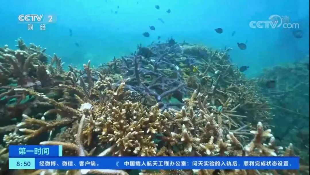 蜈支洲岛旅游区副总裁 冯超:“截至目前,我们海洋牧场建设已经投入了近6000万元来负责整个海洋生态的保育工作,我们已经修复了将近4万株珊瑚,修复面积达到5万平方米。”