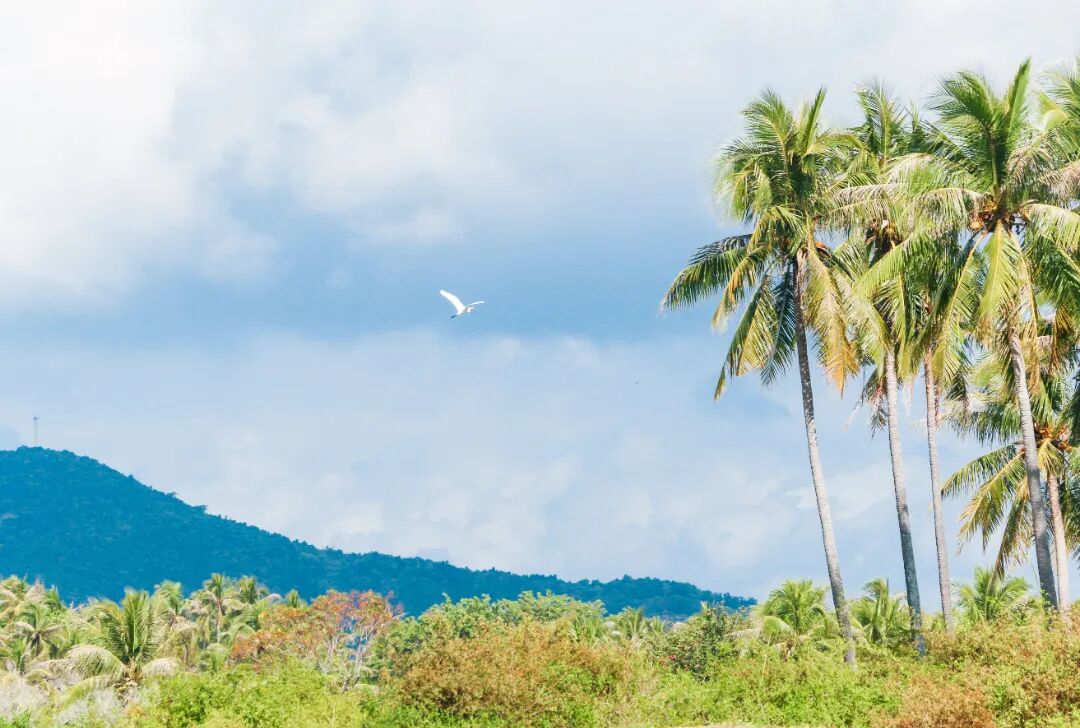 走进海丰村,独具特色的新民宿错落有致,路面干净整洁,一排排高耸入云、挺拔秀丽的椰子树映入眼帘,清澈的海面上倒映着竹筏和渔人的影子,构成一幅美丽的乡村画卷......