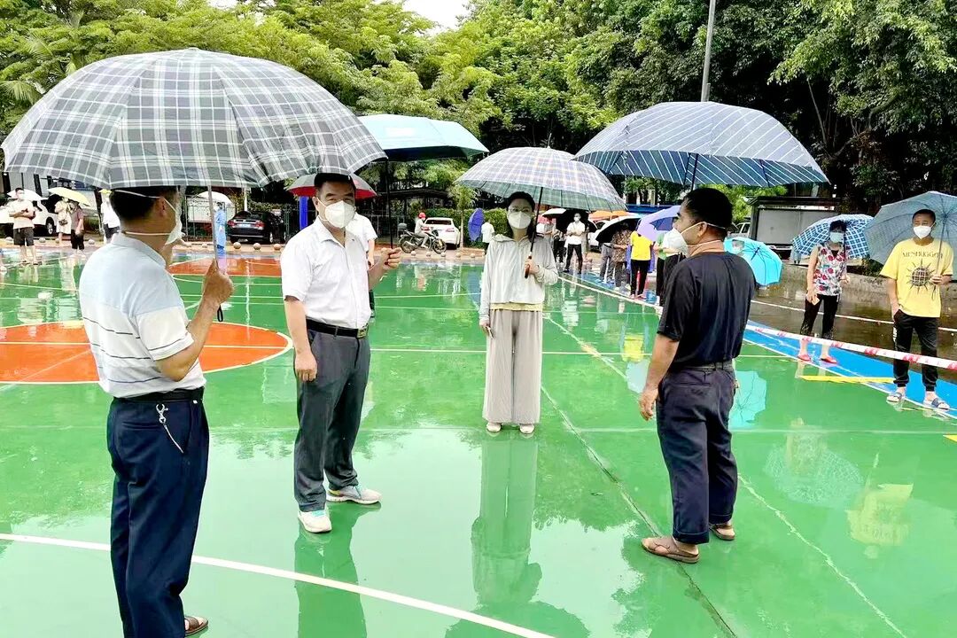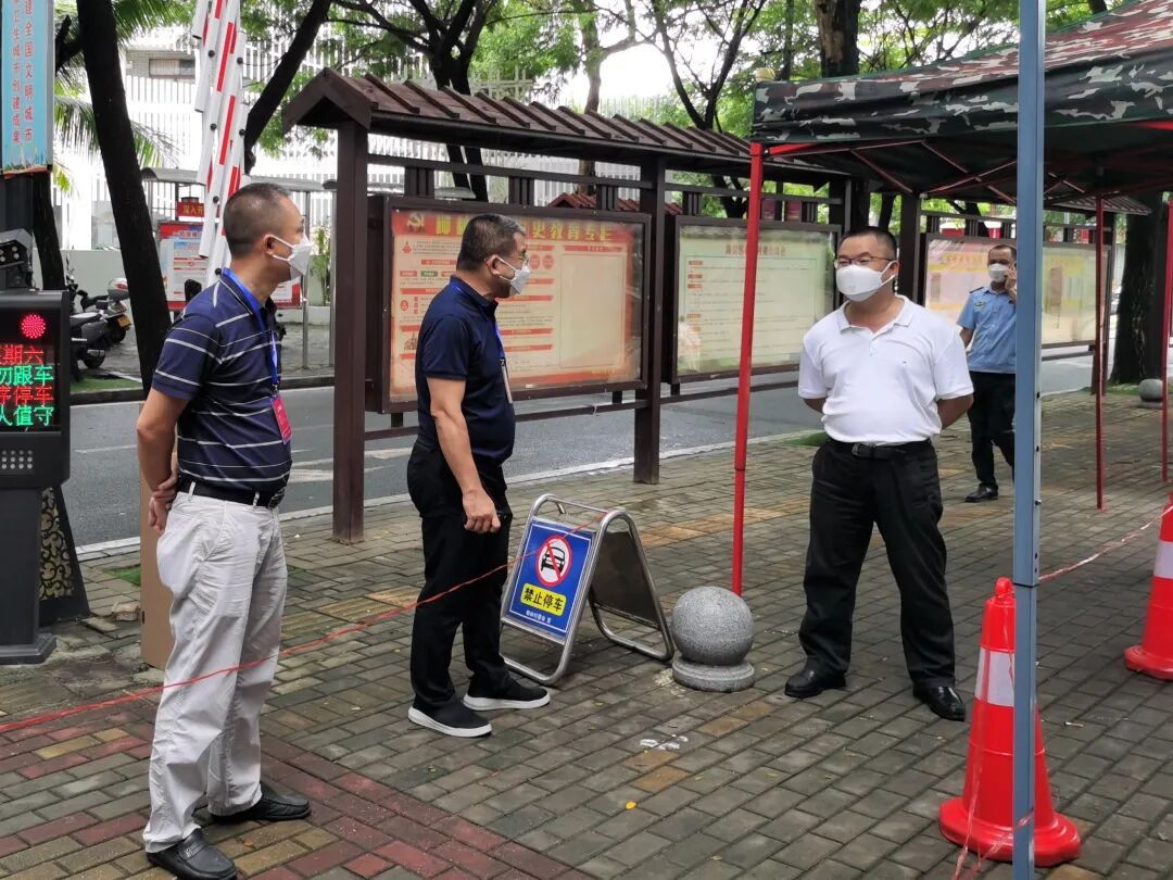 ▲8月6日上午,区委常委、宣传部部长林辉,区委常委、统战部部长黄泽纬在龙海大社区检查疫情防控措施落实情况。