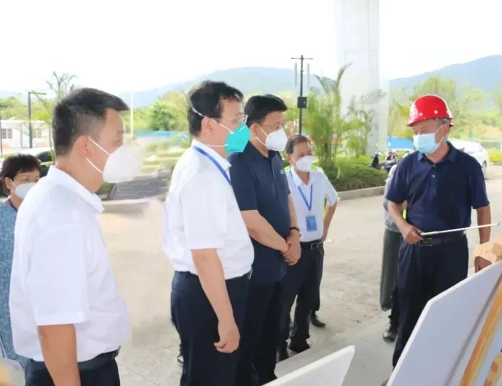 ▲8月7日,国务院联防联控机制社区防控工作组到三亚市海棠区调研检查三亚2号方舱设计项目。省、市、区三级相关领导陪同。