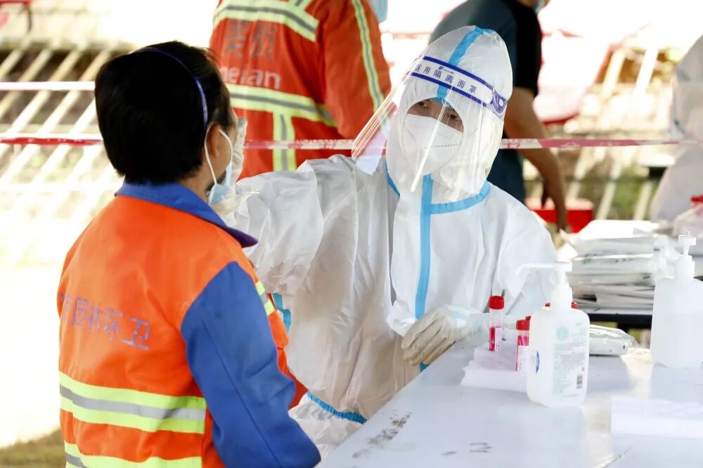 ▲8月7日,副区长王蓓在北山村检查指导核酸检测工作。