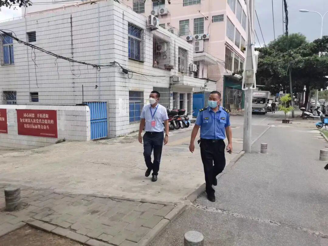 ▲8月9日,区政府党组成员、市综合行政执法局海棠分局局长陈敬葵到林旺街道巡查。