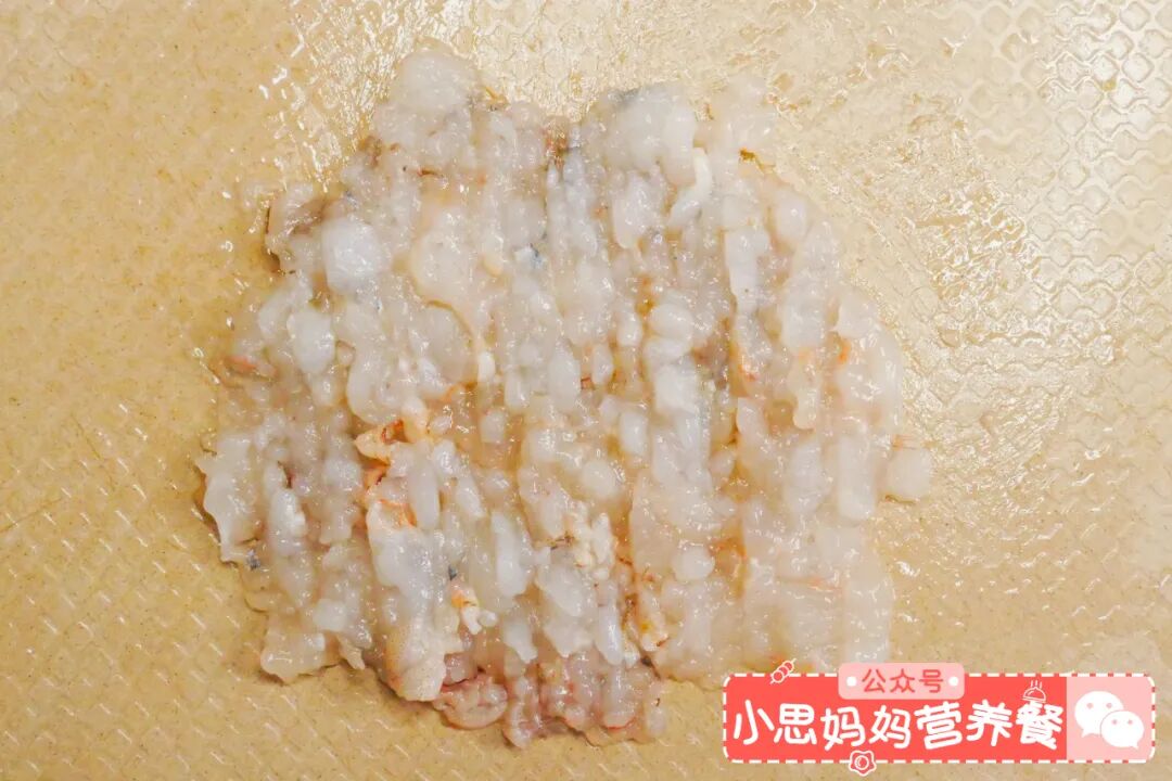 虾去虾线,切成虾泥。