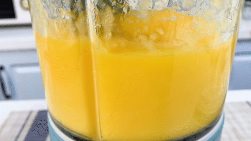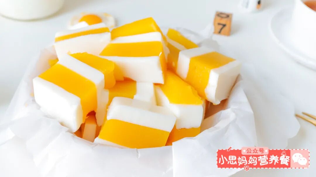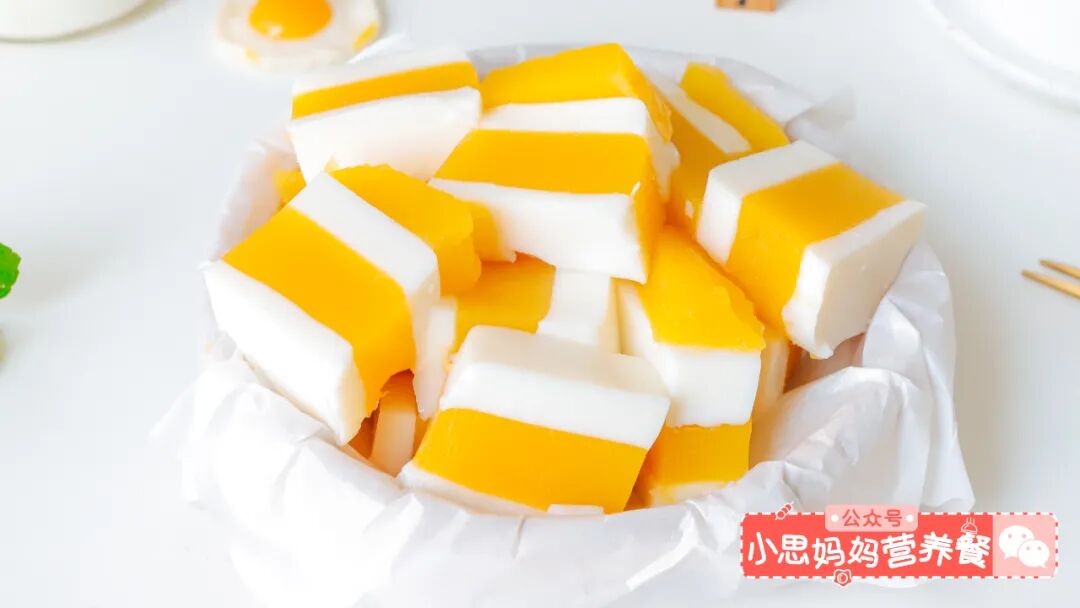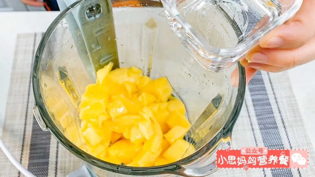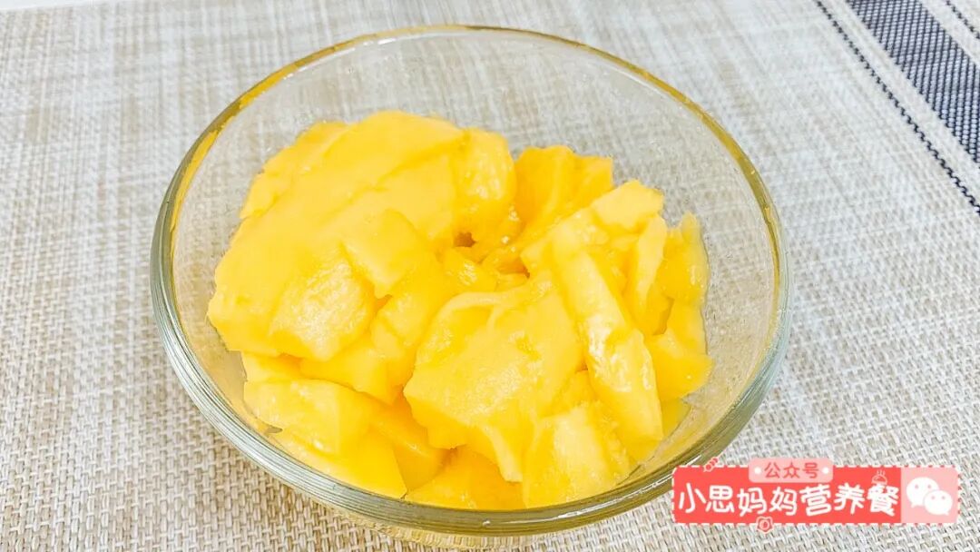 食材:大芒果1个(芒果肉250克左右)、牛奶250毫升、糖20克、吉利丁片25克
