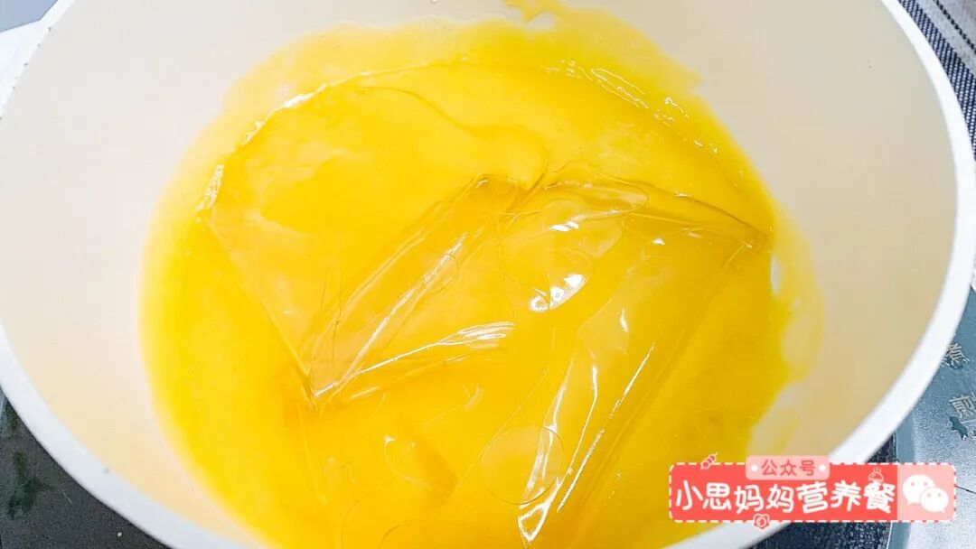 tips:注意是冷水,吉利丁片遇热水会融化,大概十分钟左右就泡软了~