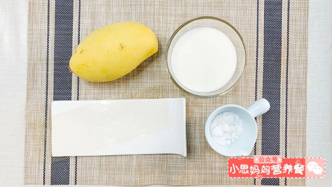 准备食材:大芒果1个(芒果肉250克左右)、牛奶250毫升、糖20克、吉利丁片25克