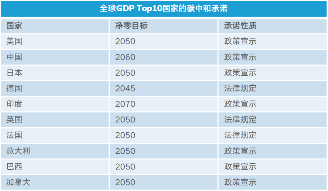 目前,全球范围内已有数十个国家提出了碳中和的目标,14个国家完成相关立法,33个国家在政策文件中宣誓,19个国家发表了公开声明或承诺,57个国家将碳中和纳入提案当中。