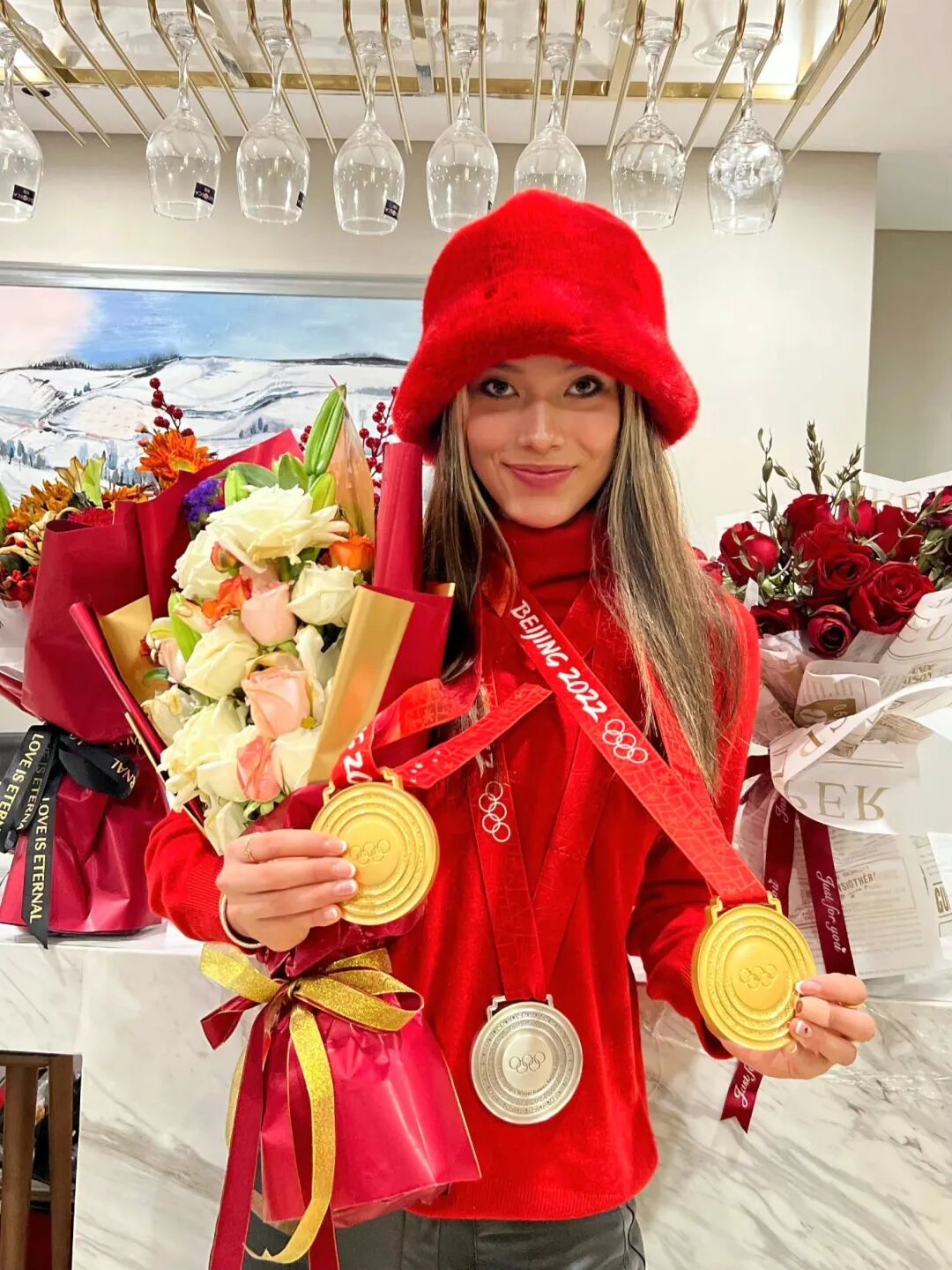 谷爱凌先是在年初的冬奥会上取得了两金一银,