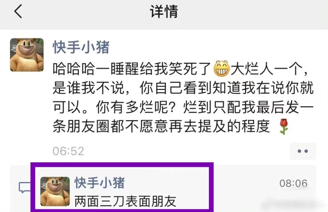 先是小猪先生发pyq内涵殷世航是两面三刀的朋友,