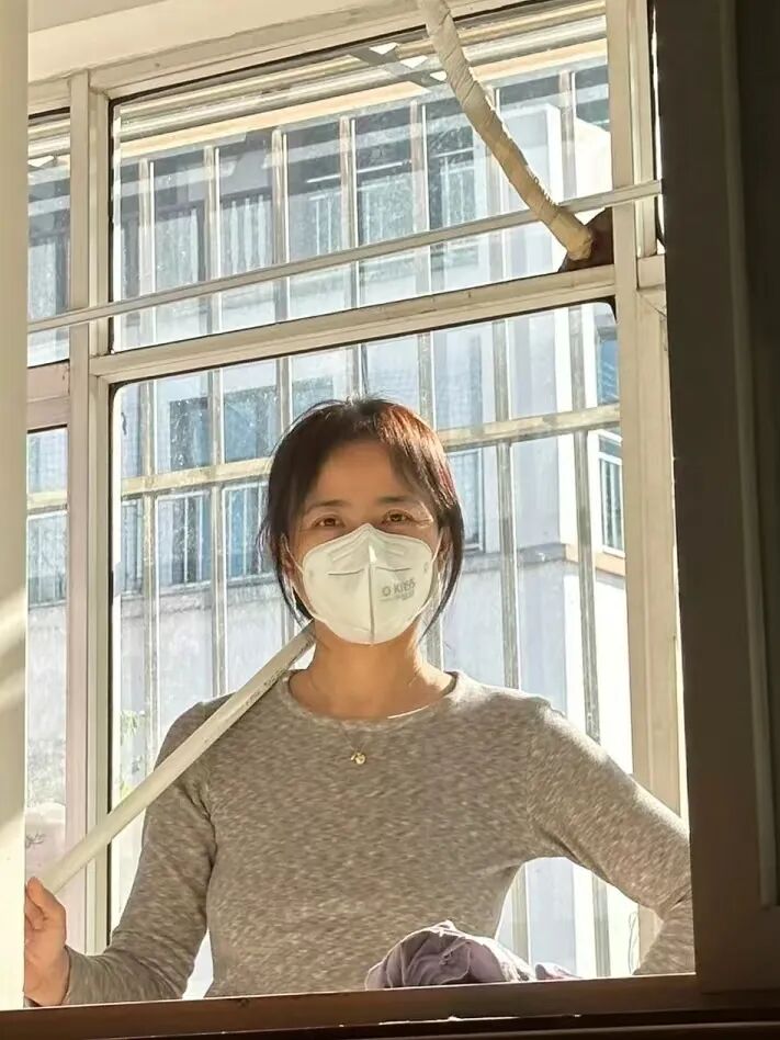 口罩遮着脸但笑意还是从温柔如水的眼睛中跑出来,