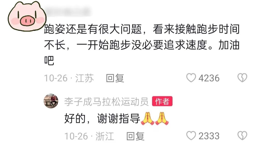 李子成也谦虚礼貌地回复了给出建议的网友。
