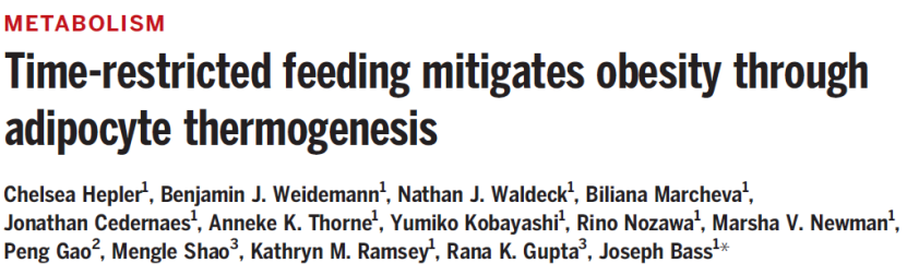 1. Chelsea Hepler, et al., Time-restricted feeding mitigates obesity through adipocyte thermogenesis. Science. 2022.