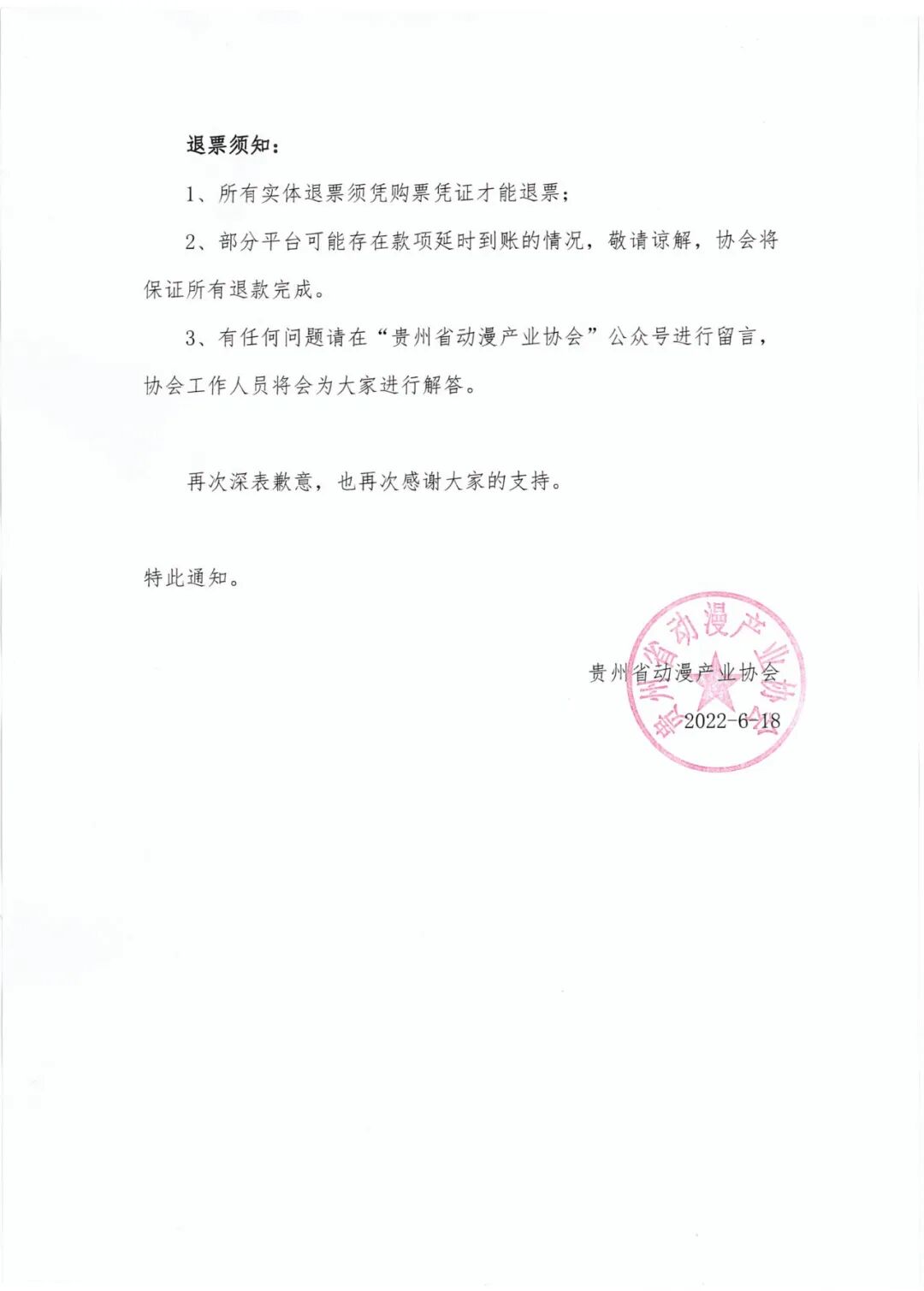6月18日晚,贵州省动漫产业协会发布通知称,考虑到安全问题,原定于6月19日举行的“G1”漫展延期举办,后续举办时间另行通知。