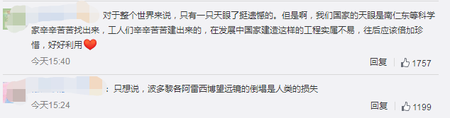一位阿雷西博天文台的工作人员人此前表示,阿雷西博射电望远镜若失去功能,那么全世界在天文探索领域,将只能依靠来自中国贵州的另一只“大眼睛”,500米口径球面射电望远镜(FAST)。